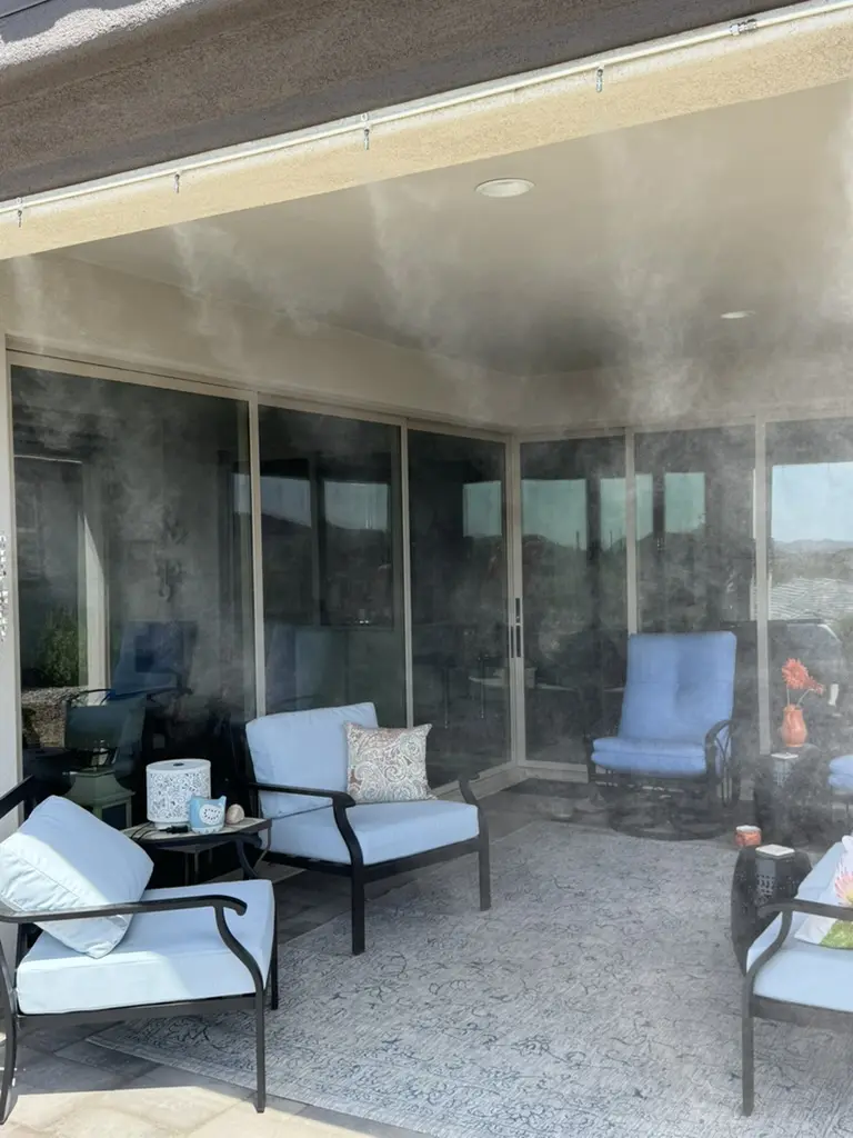 Designed for both comfort and durability, our 1,000-PSI misting systems create an ultra-fine mist that evaporates before it lands, providing instant cooling without leaving surfaces wet. We use cleanable, anti-drip brass nozzles and durable nylon, stainless steel, or copper piping to ensure long-lasting performance customized to your space. Whether you're cooling a cozy patio or a large outdoor living area, we design each system to maximize efficiency, comfort, and health benefits.